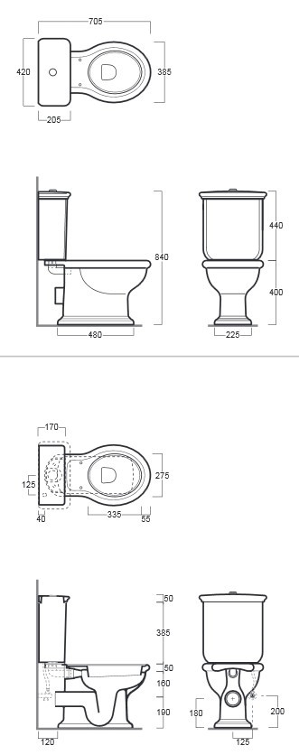Высота чаши унитаза - 400 мм,