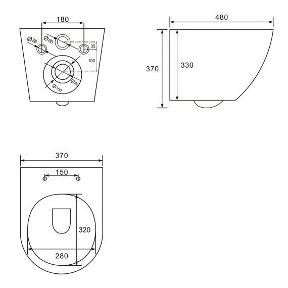 Высота чаши унитаза - 370 мм,