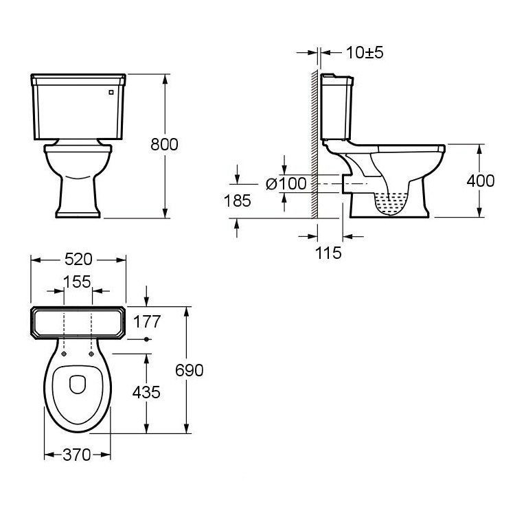 Высота чаши унитаза - 400 мм,