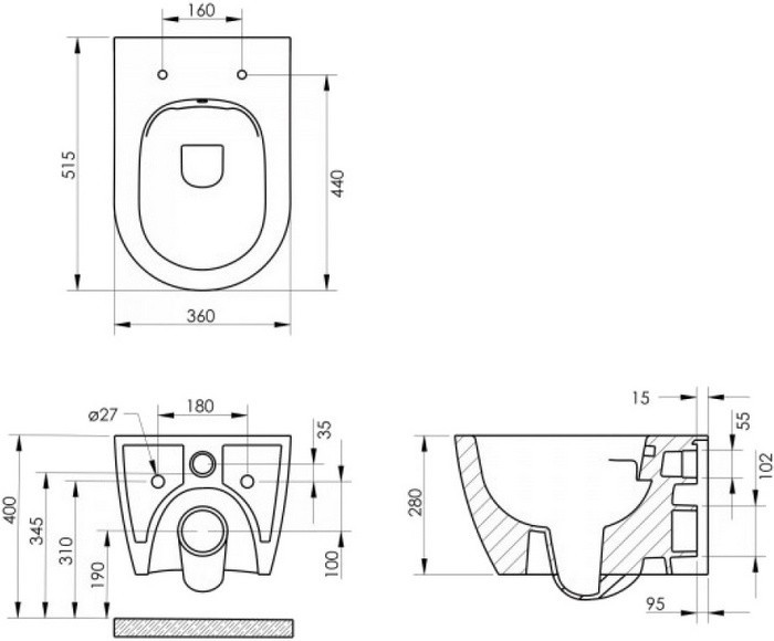 Высота чаши унитаза - 320 мм,