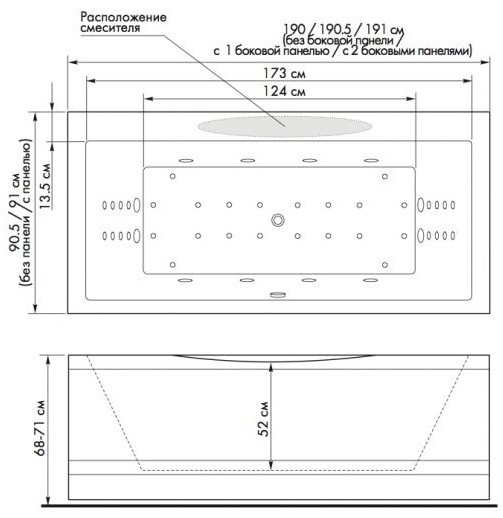 Глубина ванны - 520 мм,