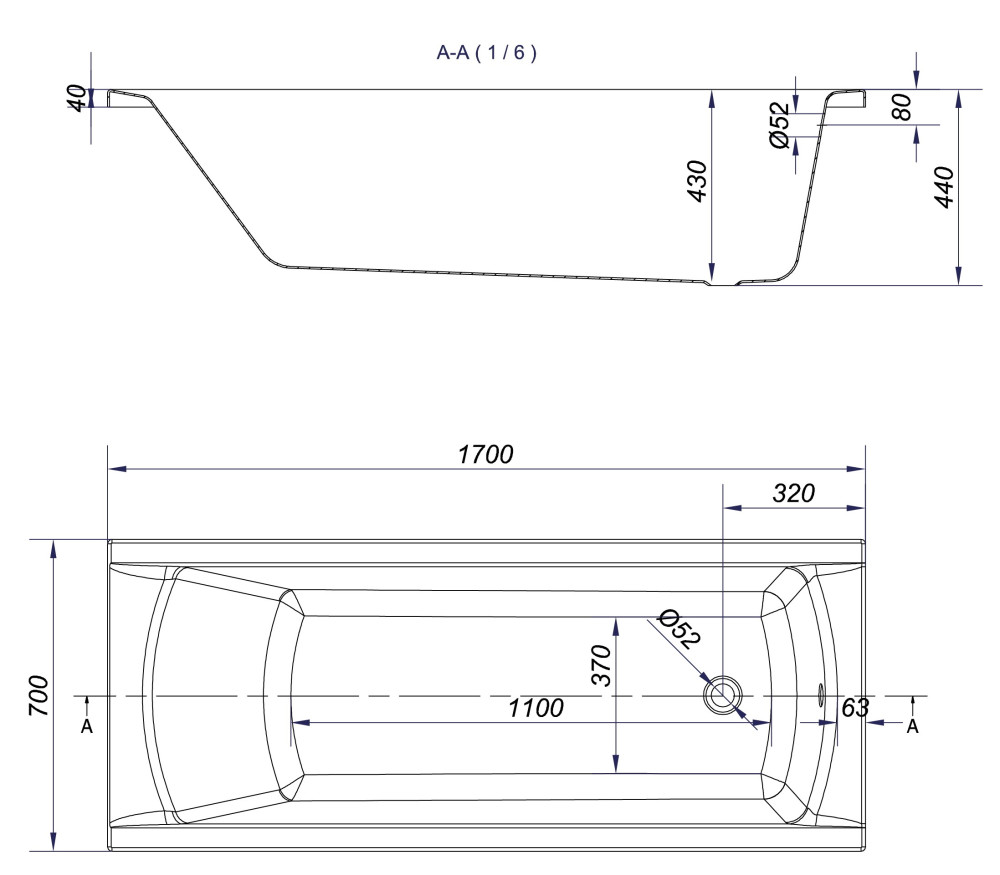 1700x700 мм