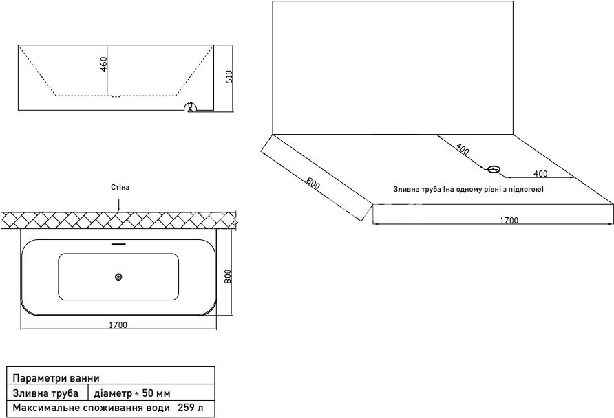 1700x800x610 мм