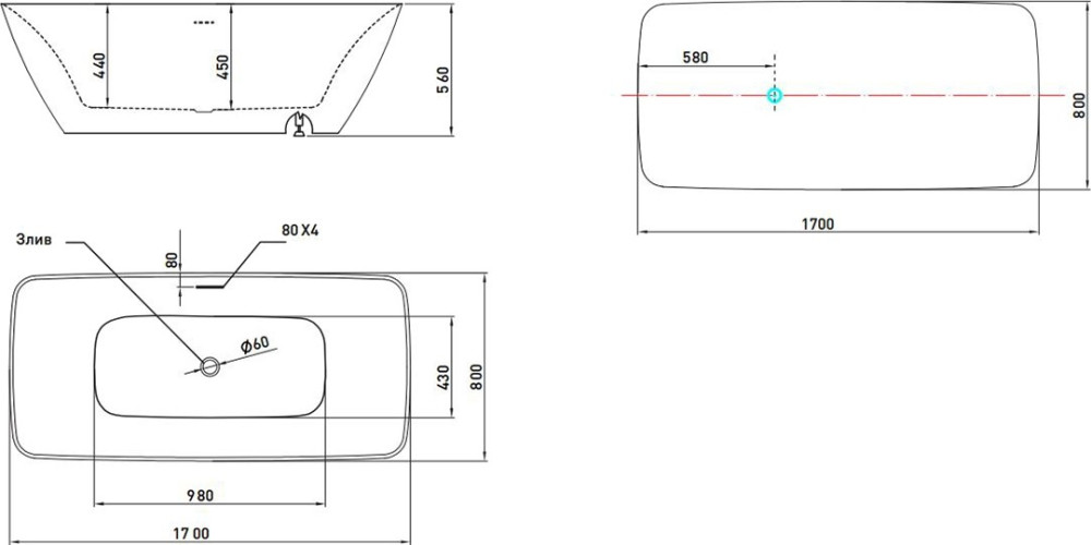 1700x800x560 мм
