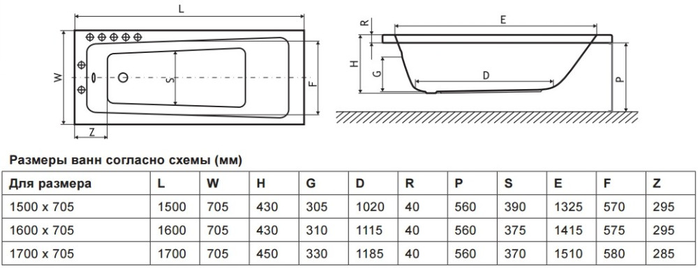 Глубина ванны - 430 мм,