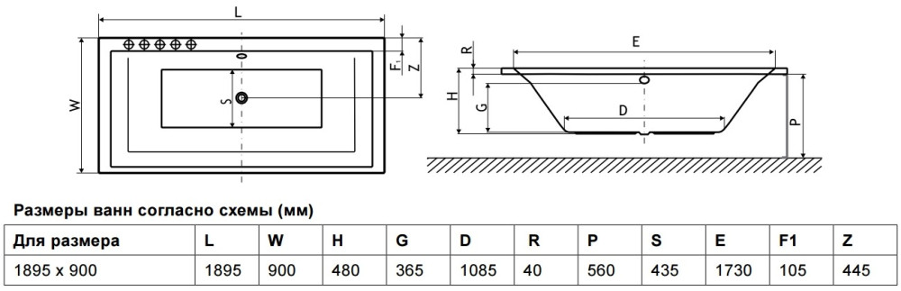 Габариты (ДхШхВ) - 1895x900x480 мм,