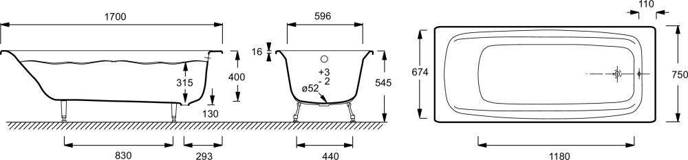 Ванна чугунная Jacob Delafon Diapason 170х75 см E2937-00 без отверстий для ручек