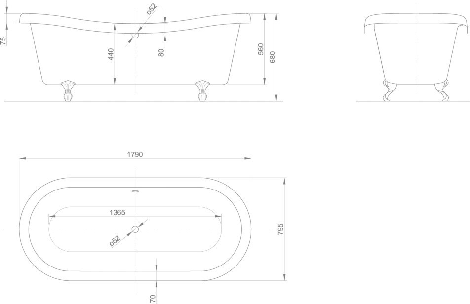 Габариты (ДхШхВ) - 1790х795 мм,