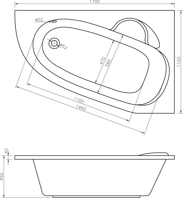Глубина ванны - 450 мм,