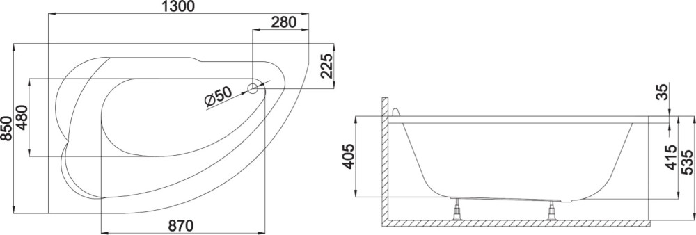Ванна Polimat Standard 130x85 см угловая разносторонняя