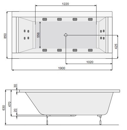 Глубина ванны - 470 мм,