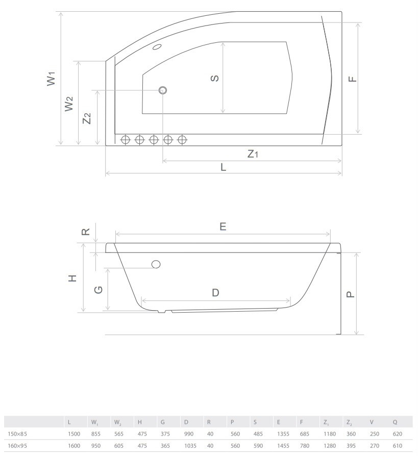 Габариты (ДхШхВ) - 1600x950 мм,