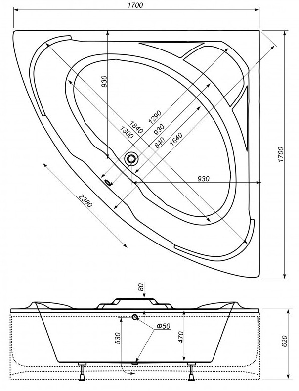 Глубина ванны - 470 мм,