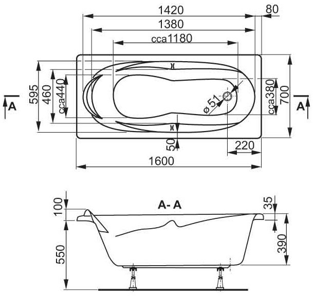 Глубина ванны - 390 мм,