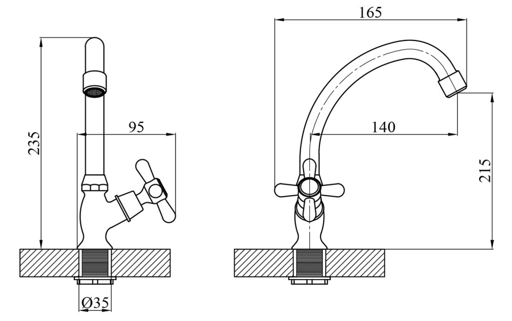 Высота смесителя - 235 мм,