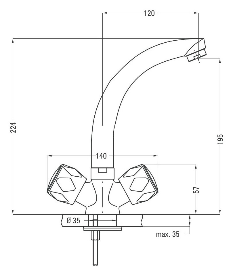 Высота смесителя - 224 мм,
