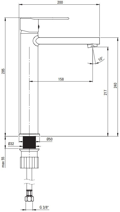 Высота смесителя - 285 мм,