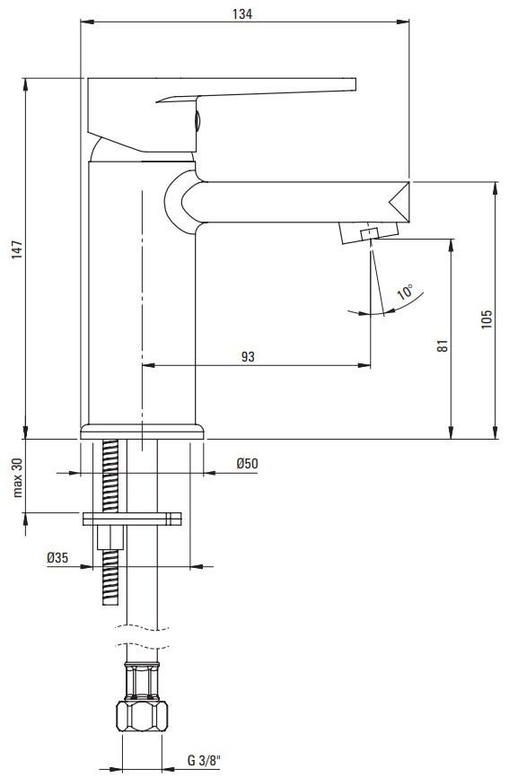 Высота смесителя - 147 мм,