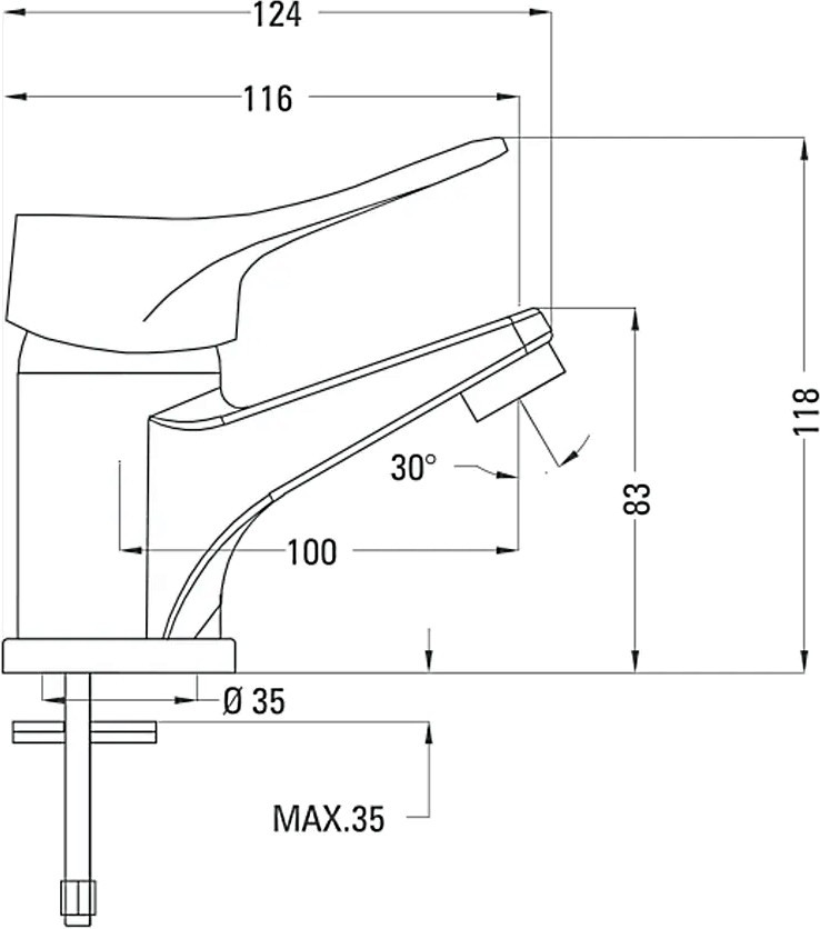 Высота смесителя - 118 мм,