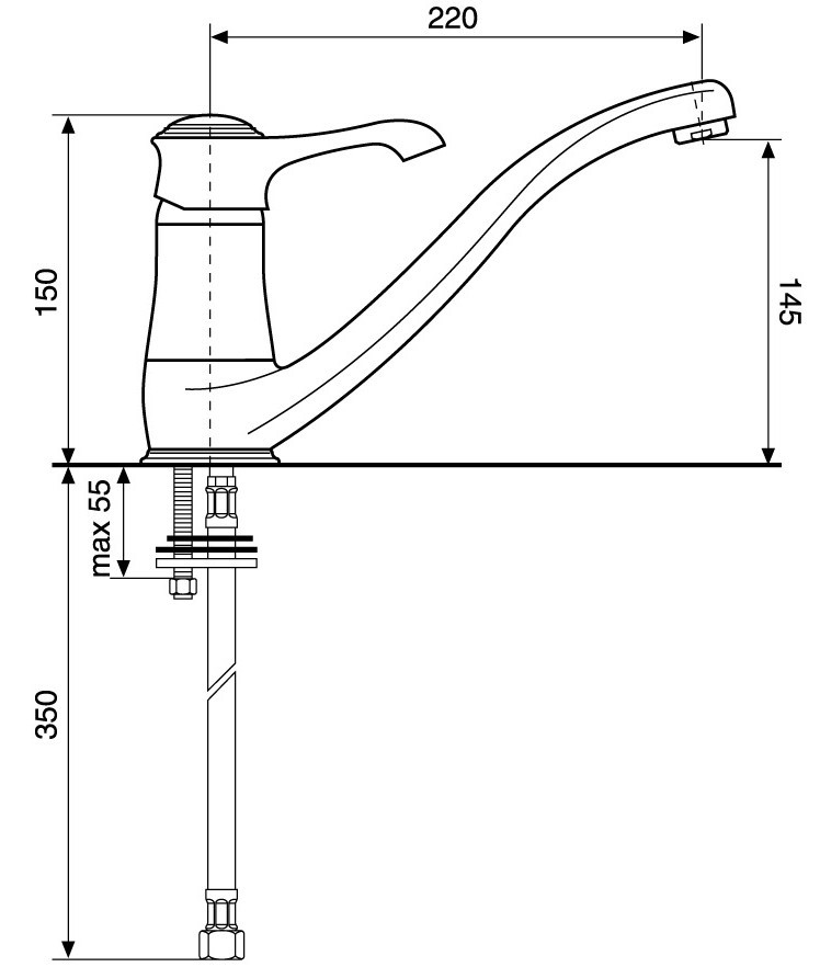 Форма излива - под углом загнутый,