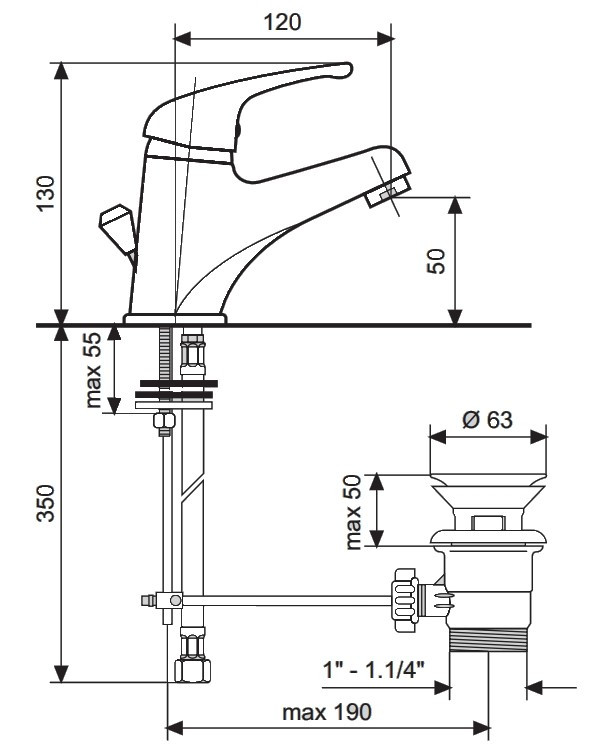 Высота смесителя - 130 мм,