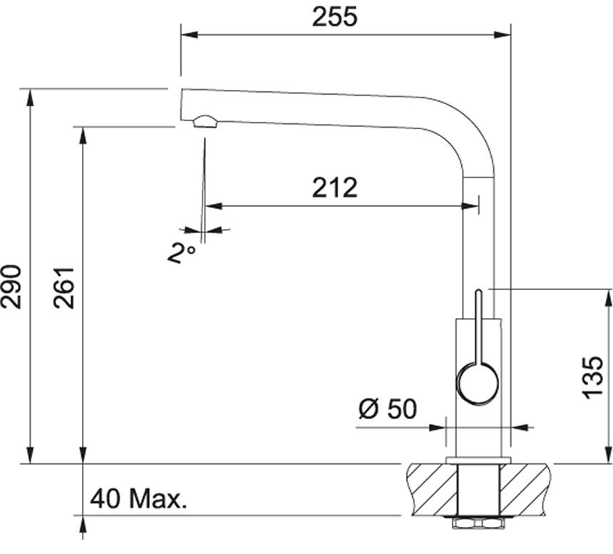 Высота смесителя - 290 мм,