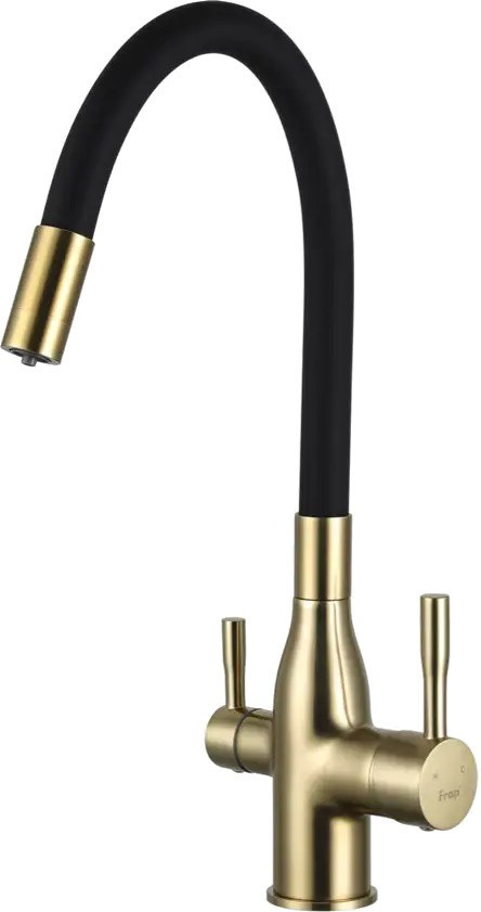 змішувач для кухні Frap під фільтр із гнучким виливом, золотийчорний (F4396-3)