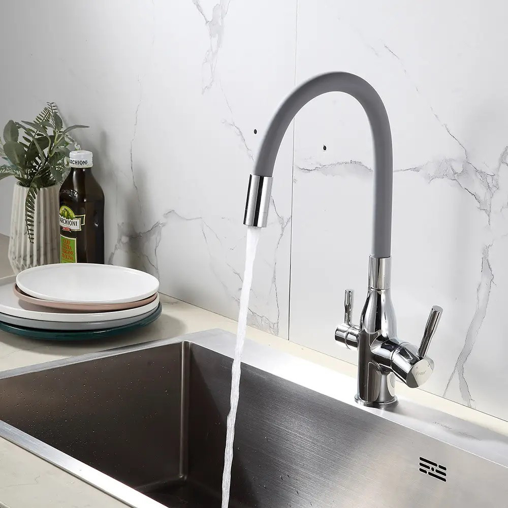 змішувач для кухні Frap під фільтр з гнучким виливом, сірийхром (F4396)