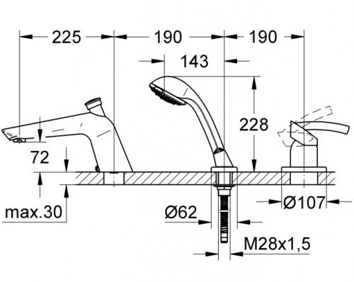 Высота смесителя - 228 мм,