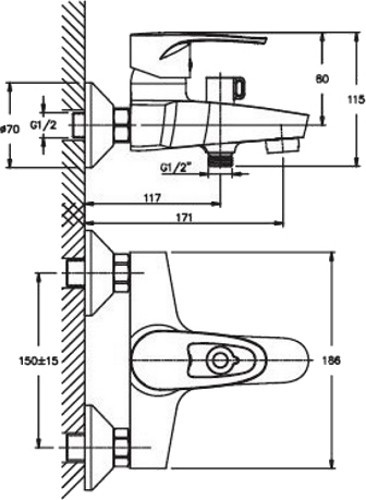 Высота смесителя - 115 мм,