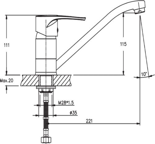 Форма излива - под углом загнутый,