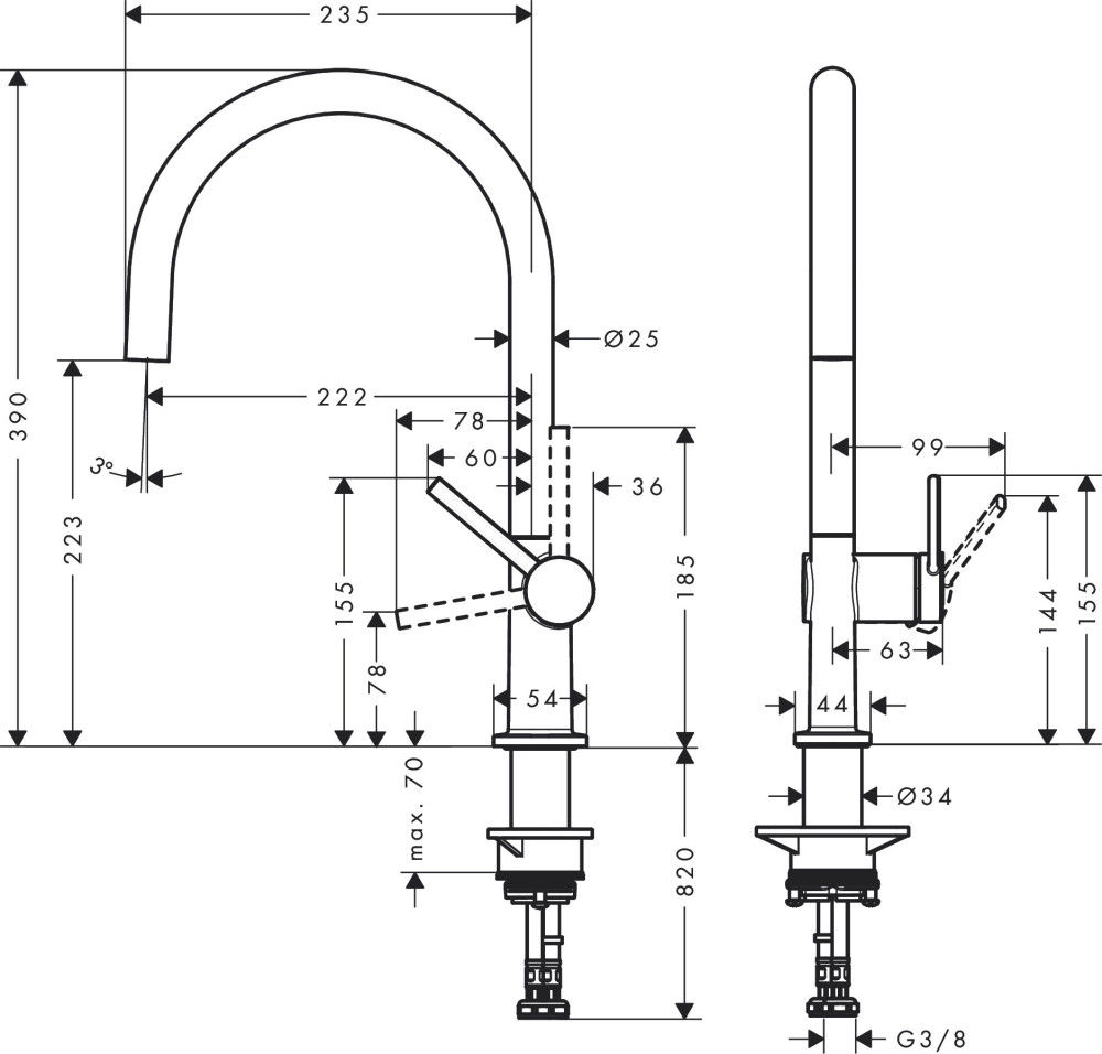 Высота смесителя - 390 мм,