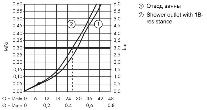 Расход воды - 30 л/мин / максимальный, при давлении 3 бар /,