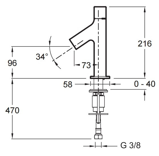 Высота смесителя - 216 мм,