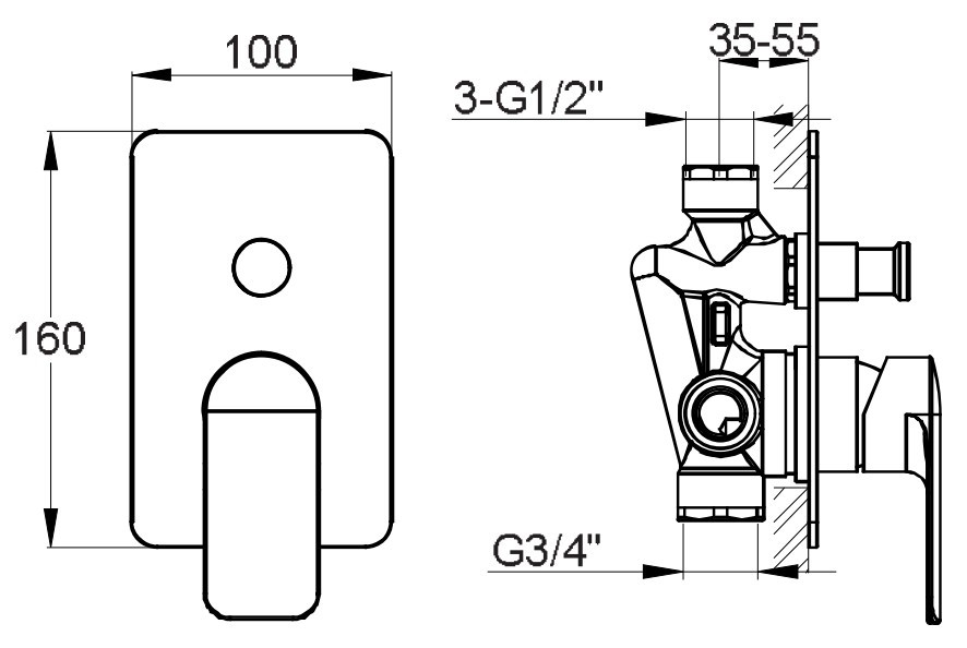 Тип монтажа - встраиваемый в стену,