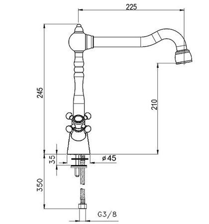 Высота смесителя - 245 мм,