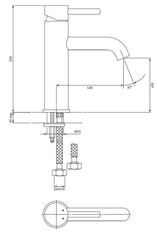 Высота смесителя - 210 мм,