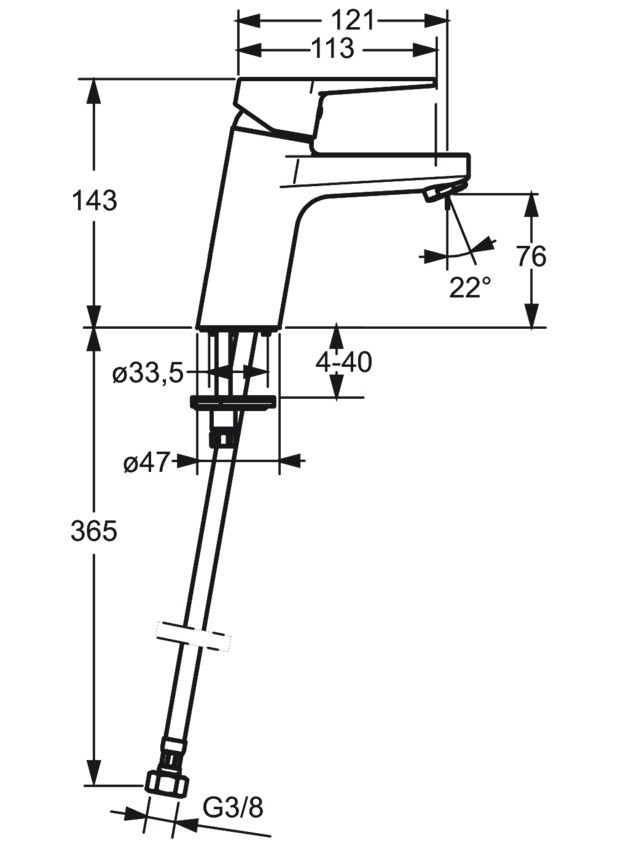Высота смесителя - 143 мм,