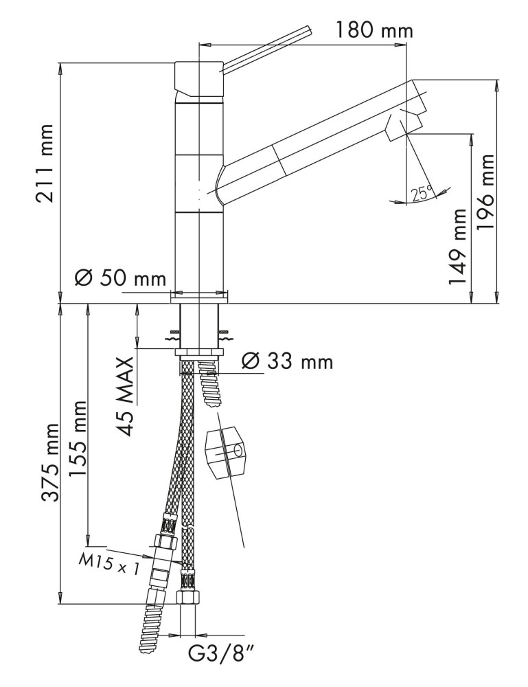 Высота смесителя - 211 мм,