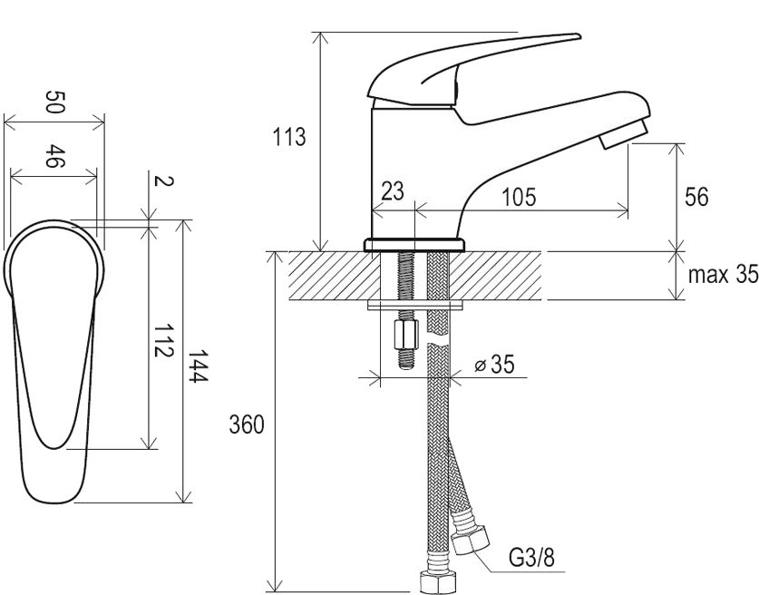 Высота смесителя - 113 мм,