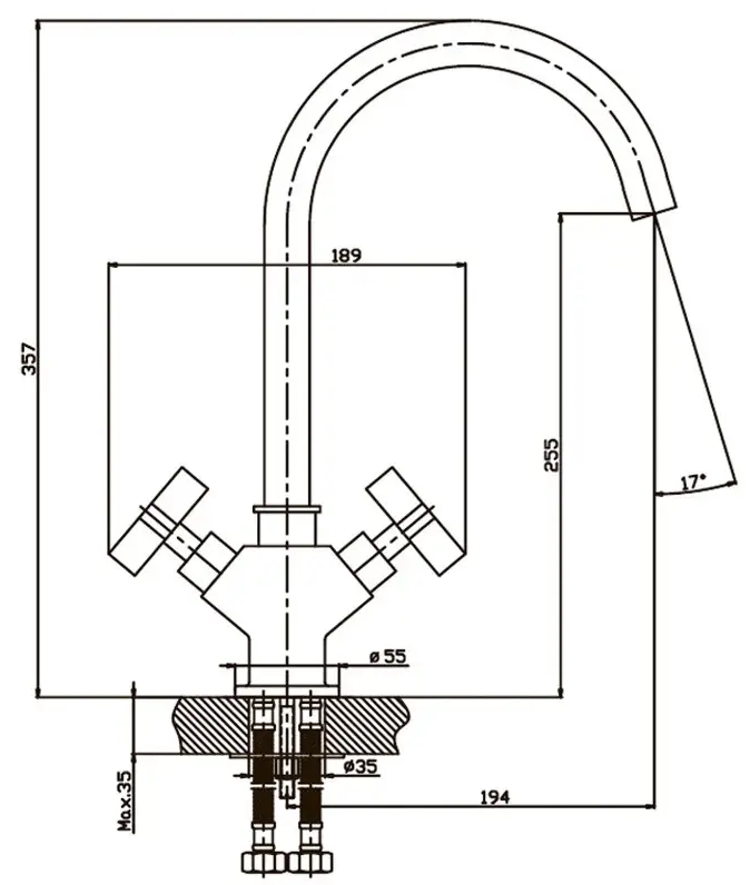 Высота смесителя - 357 мм,