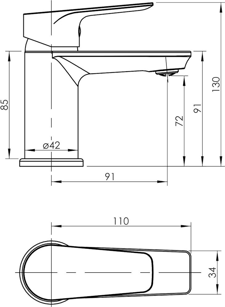 Высота смесителя - 130 мм,