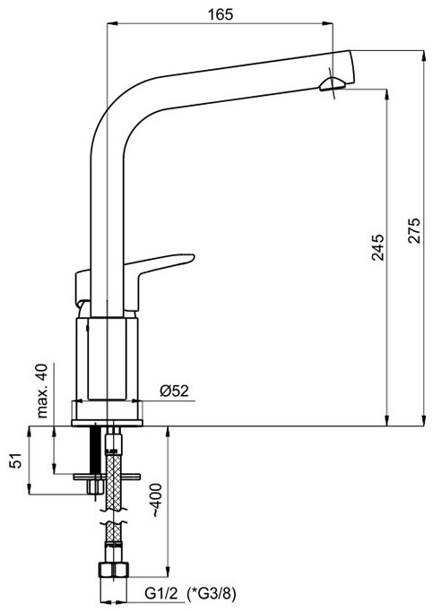 Высота смесителя - 275 мм,