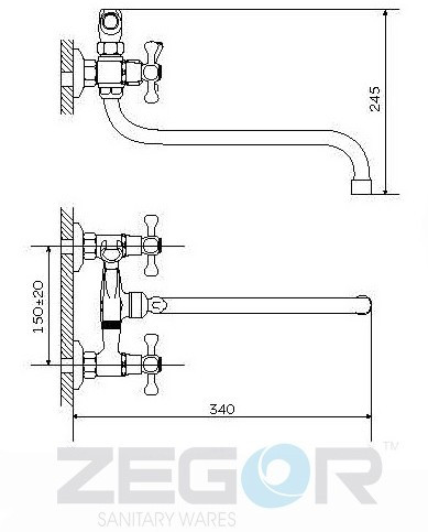 Высота смесителя - 245 мм,