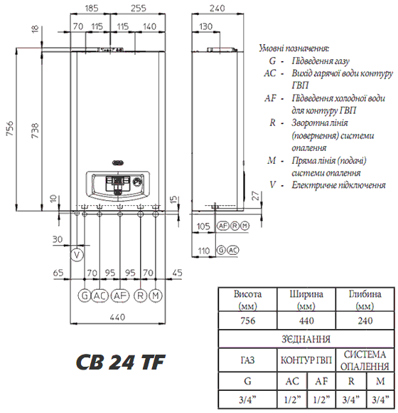 Диаметр дымохода - 60/100, 80/125 мм / 80/80 для раздельного /,
