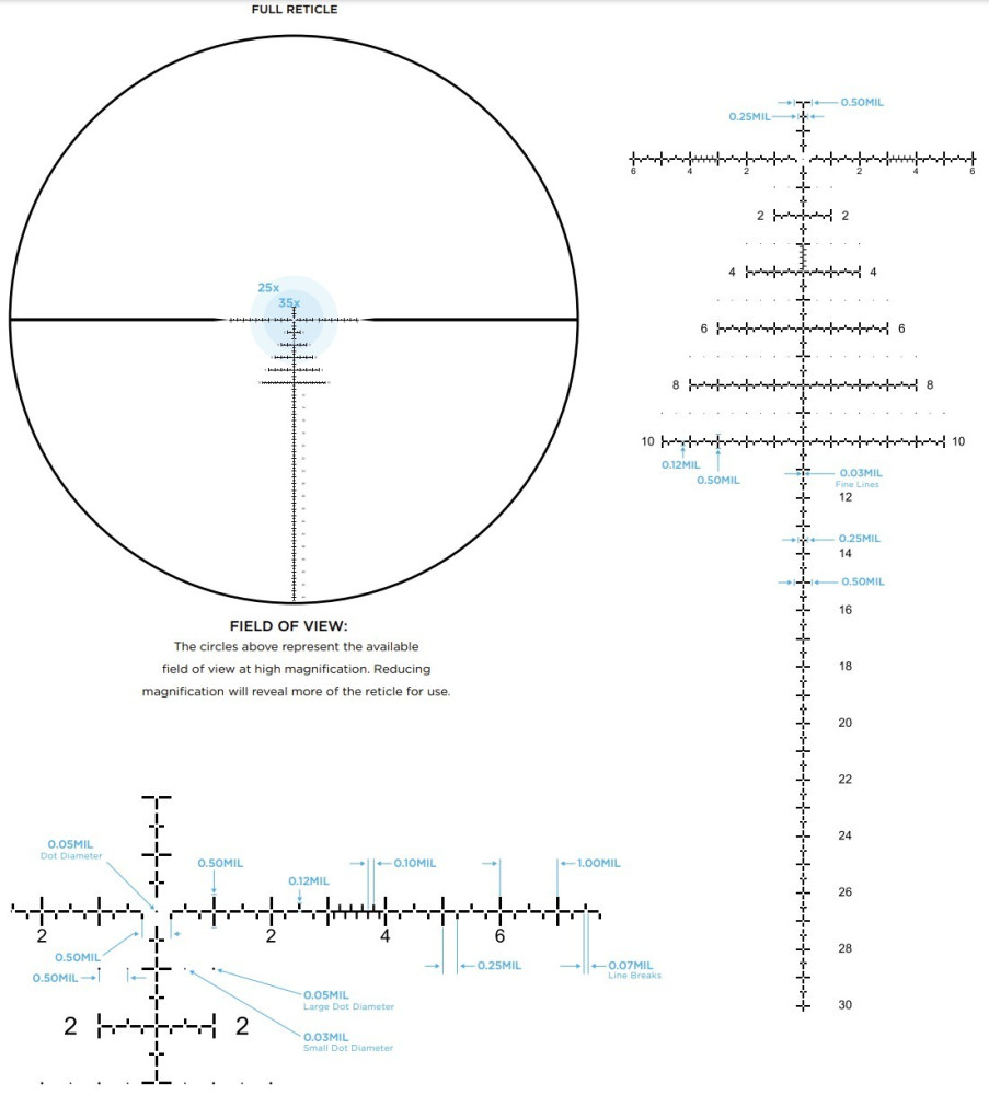 Прицельная сетка - в 1-й фокальной плоскости (FFP),