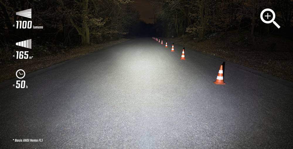 Дальность освещения - 165 м,