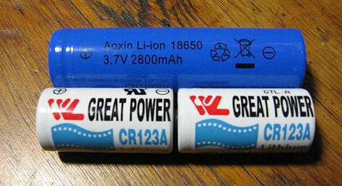 Источник питания - 2x18650 / или 4xCR123 /,
