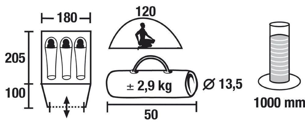 Водонепроницаемость тента - 1000 мм вод. ст,