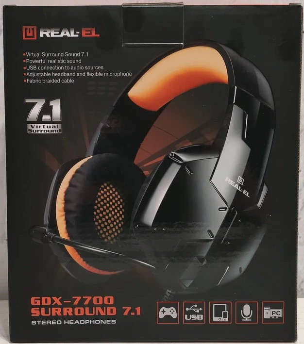 Навушники REAL-EL GDX-7700 SURROUND 7.1 black-orange ігрові з мікрофоном USB